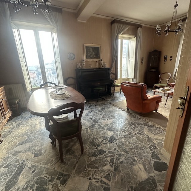 L'appartamento è composto da ampio ingresso, studio, camerino, ampia sala da pranzo, grande camera da letto, cucina abitabile e servizio. Balconi a giro e terrazza soprastante di proprietà, dotata di piccolo vano con torrino soprastante. |